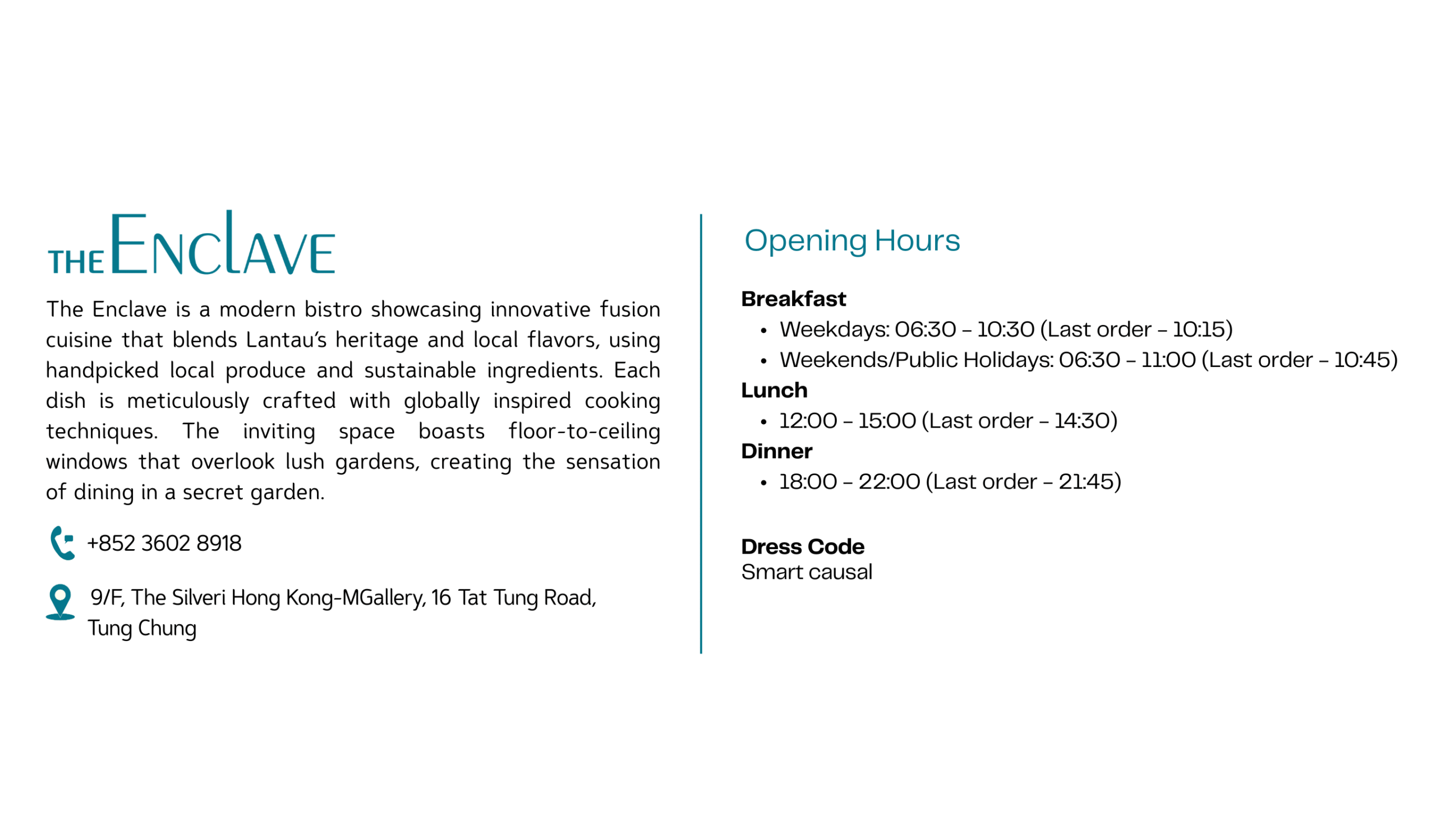 Relish innovative Hong Kong-inspired fusion cuisine, alongside seasonal seafood platters, vibrant appetizers and indulgent desserts-all perfectly complemented by refreshing Campari and Aperol Spritz. In our unique tranquil setting, indulge in leisurely weekend moments unlike anywhere else.