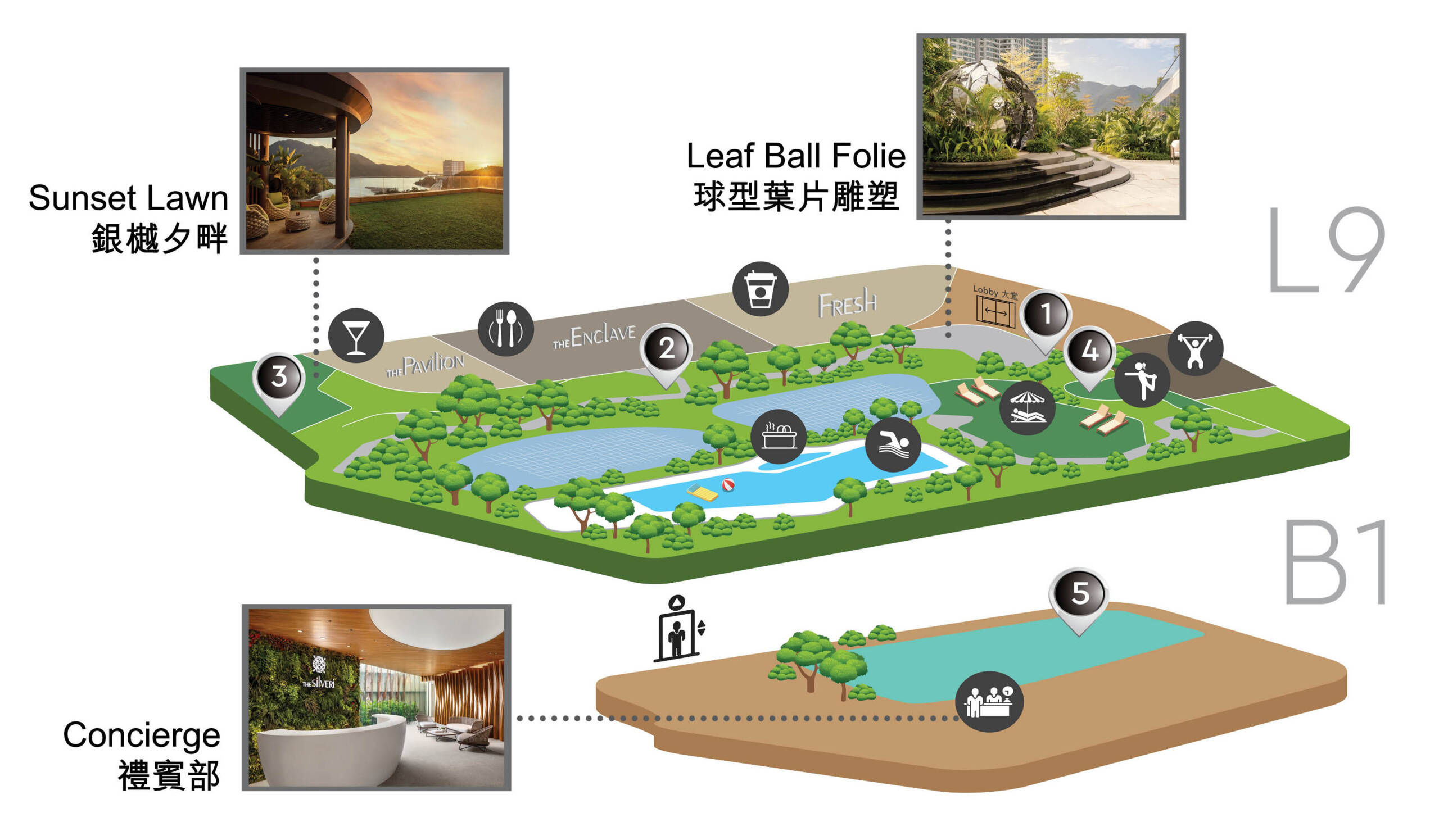 香港銀樾美憬閣精選酒店不僅是一座現代莊園,也是一處隱世秘境, 由五位象徵著大嶼山人文精髓的守護者所庇佑。 遠足者負責發掘周邊小徑的自然美景,圏丁培育芬芳花卉與蔥鬱草木,而鳥女則為莊園帶來悅耳 鳥鳴。此外,莊園擁有代表藝術靈魂的舞蹈家,也有漁夫默默地守護著湖畔靜謐。試試尋訪這五位守護者的銀色雕塑,吸收它們的自然能量,迎來好運氣!